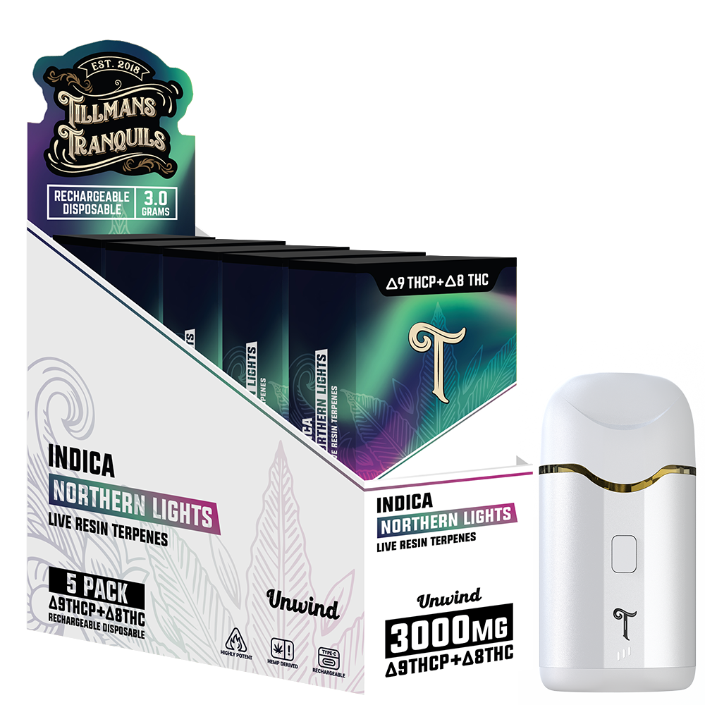 Our Live Resin Terpenes Indica THC Vape offers a relaxing and tranquil experience, perfect for unwinding after a long day. Infused with Delta 8 and Delta 9 THCp, this vape is crafted from the premium Northern Lights strain to promote calmness and serenity. With the added benefit of 6% terpenes, it provides a refreshing and potent vaping experience. Whether you seek relaxation, stress relief, or improved sleep quality, this vape offers a moment of peace in the midst of your busy day.