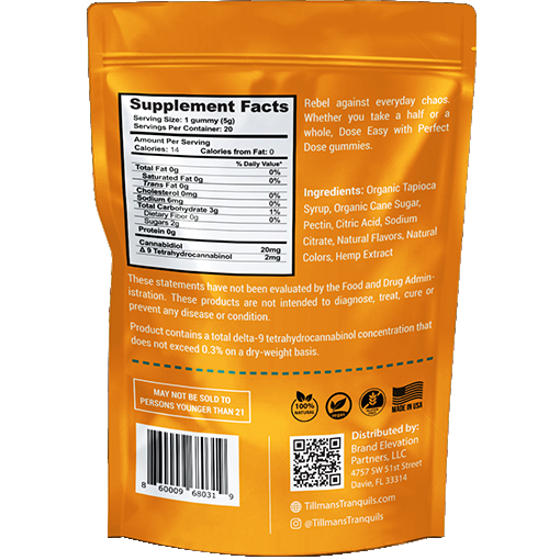 Our mango gummies taste like fresh mangoes with an everyday low dose 10:1 ratio of 20mg CBD and 2mg THC.